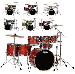 PDP X7 Series drums are finished in 8 stage-stealing sparkle lacquer finishes (Blue Sparkle Fade, Gold to Black Sparkle Fade, Lime Green Sparkle, Orange Sparkle, Purple Sparkle Fade, Red to Black Burst, Silver to Black Sparkle Fade and White Pearlescent and 4 bold wraps (Blackout, Candy Apple, Midnight Blue and Silver Metallic). Feature include all-maple shells, True-Pitch tuning, F.A.S.T. tom sizes, S.T.M. (Suspension Tom Mounts) and more. The 7-piece kit configurations include 7x8 8x10, 9x12, 12x14 14x16 toms, 18x22 bass drum and a matching wood 5x14 snare drum. Hardware and pedals sold separately.